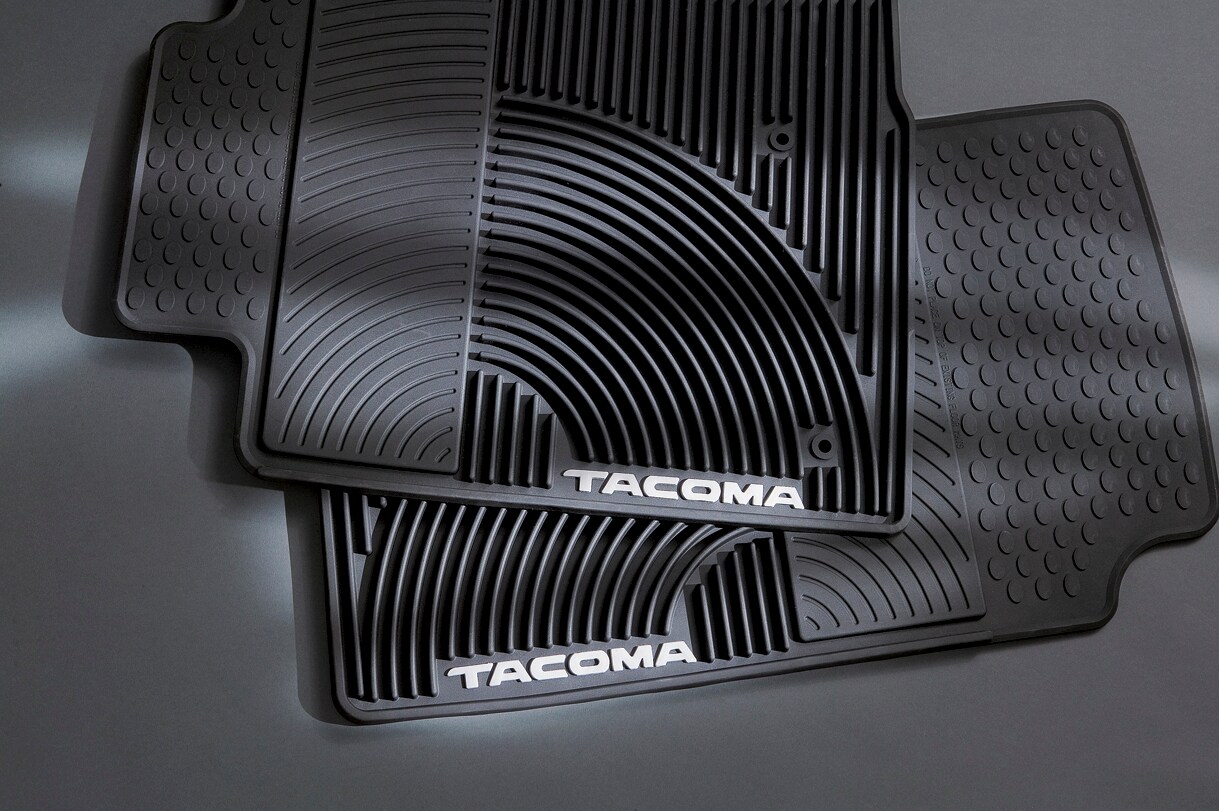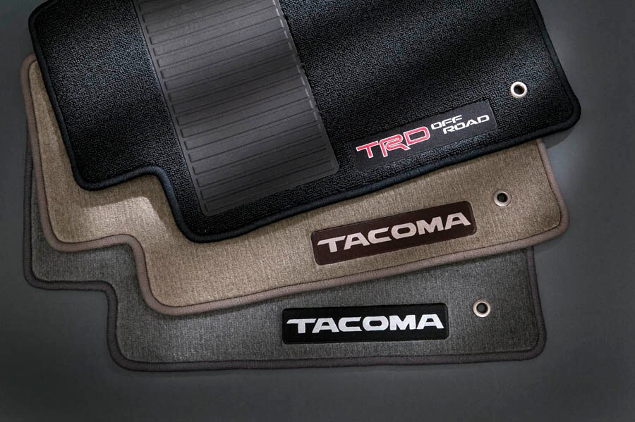include an embroidered Tacoma logo. A retention clip helps keep the mats in