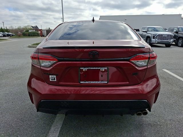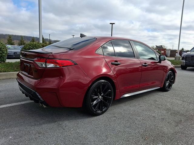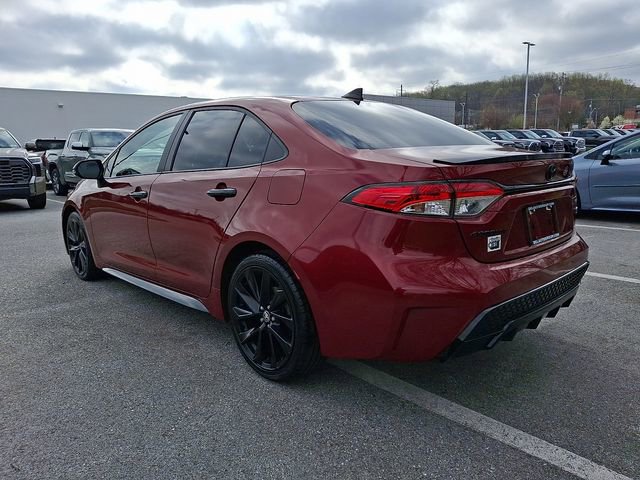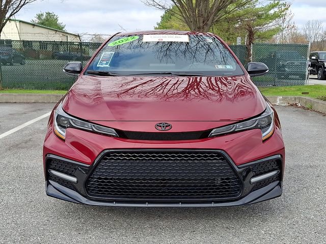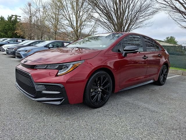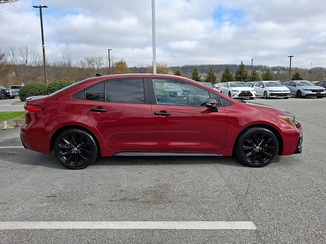 Here is a list of the vehicles features All-Weather Floor Liner Package (TMS) (All-Weather Floor Liners), Nightshade Edition, Corolla SE Nightshade, Toyota Gold Certified Certified, 4D Sedan, 2.0L I4 DOHC 16V, CVT, FWD, Ruby Flare Pearl, Black w/Premium Fabric Seat Trim, 4-Wheel Disc Brakes, 6 Speakers, ABS brakes, Air Conditioning, Alloy wheels, AM/FM radio: SiriusXM, Apple CarPlay/Android Auto, Auto High-beam Headlights, Automatic temperature control, Brake assist, Bumpers: body-color, Delay-off headlights, Door Edge Guards (TMS), Driver door bin, Driver vanity mirror, Dual front impact airbags, Dual front side impact airbags, Electronic Stability Control, Emergency communication system: Safety Connect with 1-year trial, Exterior Parking Camera Rear, Four wheel independent suspension, Front anti-roll bar, Front Bucket Seats, Front Center Armrest, Front reading lights, Fully automatic headlights, Heated door mirrors, Illuminated entry, Knee airbag, Leather Shift Knob, Low tire pressure warning, Occupant sensing airbag, Outside temperature display, Overhead airbag, Panic alarm, Passenger door bin, Passenger vanity mirror, Power door mirrors, Power steering, Power windows, Preferred Owners Portfolio (TMS), Premium Fabric Seat Trim, Radio data system, Radio: Audio, Rear anti-roll bar, Rear seat center armrest, Rear side impact airbag, Rear window defroster, Remote keyless entry, Security system, Speed control, Split folding rear seat, Spoiler, Steering wheel mounted audio controls, Tachometer, Telescoping steering wheel, Tilt steering wheel, Traction control, Trip computer, Turn signal indicator mirrors, Variably intermittent wipers, and Wheels: 18" Black Painted Alloy TSRP is not the sales price and does not include taxes, tags, title, adjusted market value, dealer installed equipment (if applicable), and $490 dealer documentary fee.