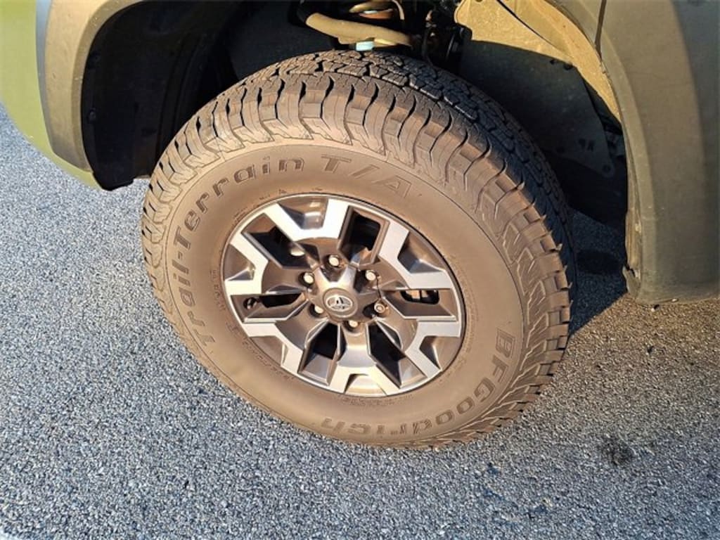 Here is a list of the vehicles features Technology Package (Blind Spot Monitor w/Rear Cross Traffic Alert, Color-Keyed Rear Bumper, Mesh Front Grille, and Rear Parking Assist Sonar), TRD Premium Off Road Package (120V/400W Deck Mounted AC Power, Auto-Dimming Rearview Mirror w/HomeLink, Automatic Headlights, Black Overfenders, Engine Immobilizer, Heated Front Seats, Leather Seat Trim, Power Tilt/Slide Moonroof, Radio: Entune Premium JBL AM/FM/CD w/Nav & App Ste, and Smart Key w/Push Button Start), Tacoma TRD Offroad V6, Toyota Gold Certified Certified, 4D Double Cab, 3.5L V6 PDI DOHC 24V LEV3-ULEV70 278hp, 6-Speed Automatic, 4WD, Army Green, Black/Gun Metal w/Leather Seat Trim, 6 Speakers, ABS brakes, Active Cruise Control, Air Conditioning, Alloy wheels, AM/FM radio: SiriusXM, Anti-whiplash front head restraints, Apple CarPlay/Android Auto, Auto High-beam Headlights, Auto-dimming Rear-View mirror, Automatic temperature control, Axle Ratio: 3.91, Brake assist, Bumpers: body-color, Driver door bin, Dual front impact airbags, Dual front side impact airbags, Electronic Stability Control, Emergency communication system: Safety Connect with 1-year trial, Exterior Parking Camera Rear, Fabric Seat Trim (FD), Front anti-roll bar, Front Bucket Seats, Front Center Armrest, Front dual zone A/C, Front fog lights, Front reading lights, Front Seats, Front wheel independent suspension, Heated door mirrors, Illuminated entry, Knee airbag, Leather Shift Knob, Low tire pressure warning, Occupant sensing airbag, Outside temperature display, Overhead airbag, Overhead console, Panic alarm, Passenger door bin, Power door mirrors, Power driver seat, Power steering, Power windows, Radio: AM/FM Radio, Rear step bumper, Remote keyless entry, Security system, Speed control, Speed-sensing steering, Split folding rear seat, Steering wheel mounted audio controls, Tachometer, Telescoping steering wheel, Tilt steering wheel, Traction control, Trip computer, Turn signal indicator mirrors, Variably intermittent wipers, and Wheels: 16" x 7J Machined Contrast Alloy MSRP is not the sales price and does not include taxes, tags, title, adjusted market value, dealer installed equipment (if applicable), and $477 dealer documentary fee.