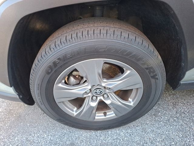 Here is a list of the vehicles features Convenience Package (Front Door Smart Key System w/Push Button Start and Tilt & Slide Moon Roof), XLE Grade Weather Package (Front Seat Heating and Heated 3-Spoke Leather Steering Wheel), RAV4 Hybrid XLE, Toyota Gold Certified Certified, 4D Sport Utility, 2.5L 4-Cylinder, eCVT, AWD, Lunar Rock, Black w/Fabric Seat Trim, 4-Wheel Disc Brakes, 6 Speakers, ABS brakes, Air Conditioning, All Weather Floor Liners & Cargo Tray (TMS), Alloy wheels, AM/FM radio: SiriusXM, Auto High-beam Headlights, Automatic temperature control, Axle Ratio: TBD, Blackout Emblem Overlays (TMS), Brake assist, Bumpers: body-color, Delay-off headlights, Driver door bin, Driver vanity mirror, Dual front impact airbags, Dual front side impact airbags, Electronic Stability Control, Emergency communication system: Safety Connect (1-year trial), Exterior Parking Camera Rear, Fabric Seat Trim, Four wheel independent suspension, Front anti-roll bar, Front Bucket Seats, Front Center Armrest, Front dual zone A/C, Front reading lights, Front Sport Seats, Fully automatic headlights, Heated door mirrors, Illuminated entry, Knee airbag, Lane Departure Warning System, Low tire pressure warning, Occupant sensing airbag, Outside temperature display, Overhead airbag, Overhead console, Panic alarm, Passenger door bin, Passenger vanity mirror, Power door mirrors, Power driver seat, Power steering, Power windows, Radio data system, Radio: AM/FM/XM Audio System, Rear anti-roll bar, Rear seat center armrest, Rear window defroster, Rear window wiper, Remote keyless entry, Speed control, Speed-sensing steering, Split folding rear seat, Spoiler, Steering wheel mounted audio controls, Telescoping steering wheel, Tilt steering wheel, Traction control, Trip computer, Turn signal indicator mirrors, Variably intermittent wipers, and Wheels: 17" x 7.0J Silver Aluminum Alloy TSRP is not the sales price and does not include taxes, tags, title, adjusted market value, dealer installed equipment (if applicable), and $490 dealer documentary fee.