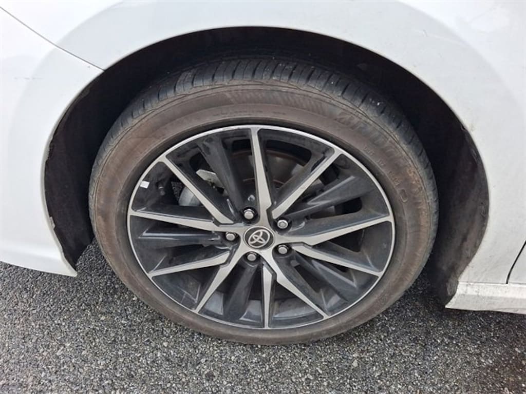 Here is a list of the vehicles features Camry SE, Toyota Gold Certified Certified, 4D Sedan, 2.5L I4 DOHC 16V, 8-Speed Automatic, FWD, Ice Cap, Black w/Sport SofTex Seat Trim w/Fabric Inserts, 18" x 8J Alloy Wheels, 4-Wheel Disc Brakes, 6 Speakers, ABS brakes, Air Conditioning, Alloy wheels, AM/FM radio: SiriusXM, Apple CarPlay/Android Auto, Auto High-beam Headlights, Automatic temperature control, Brake assist, Bumpers: body-color, Delay-off headlights, Driver door bin, Driver vanity mirror, Dual front impact airbags, Dual front side impact airbags, Electronic Stability Control, Emergency communication system: Safety Connect (1-year trial), Exterior Parking Camera Rear, Four wheel independent suspension, Front anti-roll bar, Front Bucket Seats, Front Center Armrest, Front dual zone A/C, Front reading lights, Fully automatic headlights, Heated door mirrors, Illuminated entry, Knee airbag, Leather steering wheel, Low tire pressure warning, Occupant sensing airbag, Outside temperature display, Overhead airbag, Overhead console, Panic alarm, Passenger door bin, Passenger vanity mirror, Power door mirrors, Power driver seat, Power steering, Power windows, Radio data system, Radio: Audio, Rear anti-roll bar, Rear seat center armrest, Rear side impact airbag, Rear window defroster, Remote keyless entry, Security system, Speed control, Speed-sensing steering, Split folding rear seat, Spoiler, Sport SofTex Seat Trim w/Fabric Inserts, Steering wheel mounted audio controls, Tachometer, Telescoping steering wheel, Tilt steering wheel, Traction control, Trip computer, Turn signal indicator mirrors, and Variably intermittent wipers TSRP is not the sales price and does not include taxes, tags, title, adjusted market value, dealer installed equipment (if applicable), and $490 dealer documentary fee.