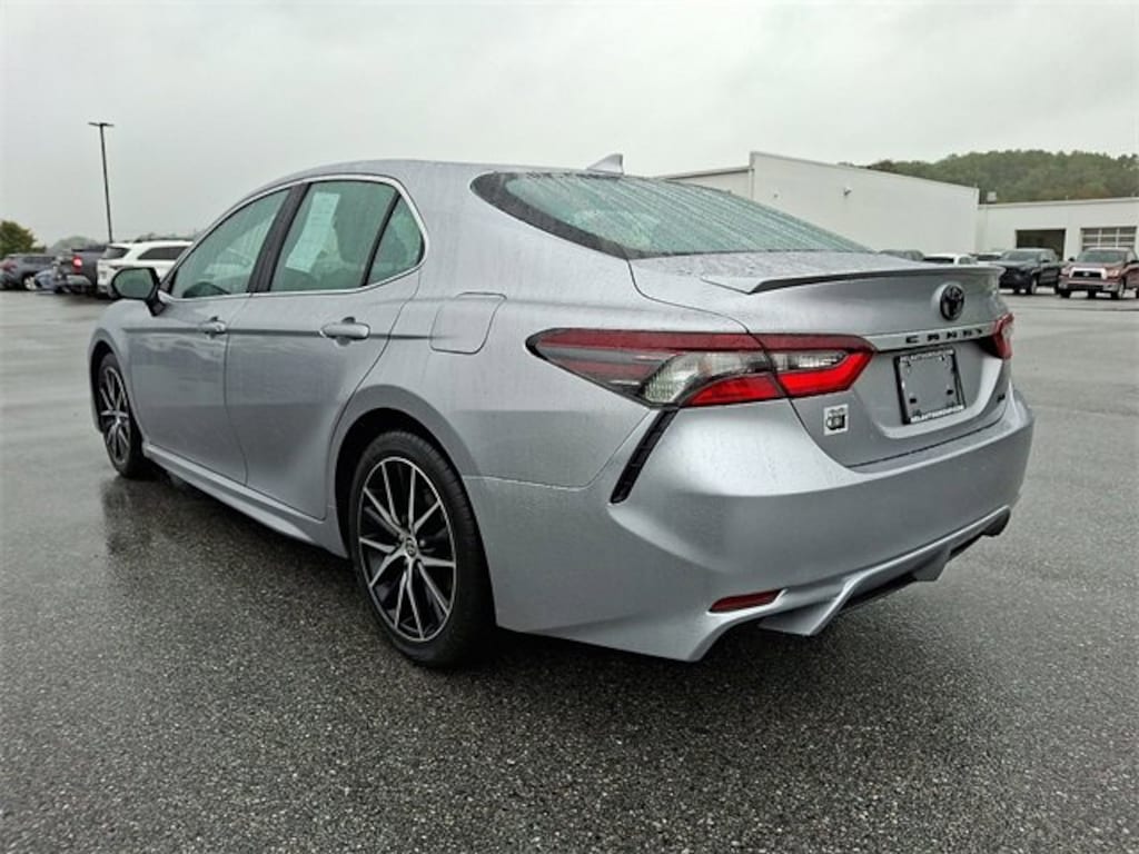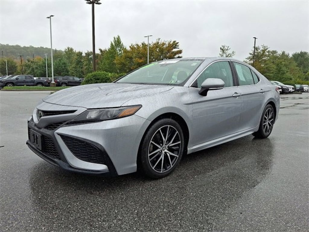 Here is a list of the vehicles features Camry SE, Toyota Silver Certified Certified, 4D Sedan, 2.5L I4 DOHC 16V, 8-Speed Automatic, FWD, Celestial Silver Metallic, Ash w/Sport SofTex Seat Trim w/Fabric Inserts, 18" x 8J Alloy Wheels, 4-Wheel Disc Brakes, 6 Speakers, ABS brakes, Air Conditioning, Alloy wheels, AM/FM radio: SiriusXM, Apple CarPlay/Android Auto, Auto High-beam Headlights, Automatic temperature control, Brake assist, Bumpers: body-color, Delay-off headlights, Driver door bin, Driver vanity mirror, Dual front impact airbags, Dual front side impact airbags, Electronic Stability Control, Emergency communication system: Safety Connect (1-year trial), Exterior Parking Camera Rear, Four wheel independent suspension, Front anti-roll bar, Front Bucket Seats, Front Center Armrest, Front dual zone A/C, Front reading lights, Fully automatic headlights, Heated door mirrors, Illuminated entry, Knee airbag, Leather steering wheel, Low tire pressure warning, Occupant sensing airbag, Outside temperature display, Overhead airbag, Overhead console, Panic alarm, Passenger door bin, Passenger vanity mirror, Power door mirrors, Power driver seat, Power steering, Power windows, Radio data system, Radio: Audio, Rear anti-roll bar, Rear seat center armrest, Rear side impact airbag, Rear window defroster, Remote keyless entry, Security system, Speed control, Speed-sensing steering, Split folding rear seat, Spoiler, Sport SofTex Seat Trim w/Fabric Inserts, Steering wheel mounted audio controls, Tachometer, Telescoping steering wheel, Tilt steering wheel, Traction control, Trip computer, Turn signal indicator mirrors, and Variably intermittent wipers TSRP is not the sales price and does not include taxes, tags, title, adjusted market value, dealer installed equipment (if applicable), and $477 dealer documentary fee.