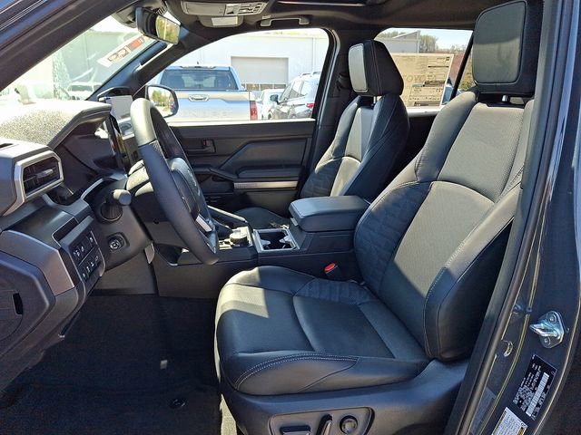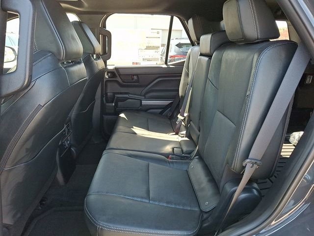 Here is a list of the vehicles features TRD Offroad Premium, 4WD, Blk Artificial Leather, 15 Speakers, 4-Wheel Disc Brakes, 4runner All Weather Cargo Tray, ABS brakes, Air Conditioning, Alloy wheels, AM/FM radio: SiriusXM, Anti-whiplash front head restraints, Apple CarPlay/Android Auto, Auto High-beam Headlights, Auto-dimming Rear-View mirror, Automatic temperature control, Badge Inserts, Rear TOYOTA Matte Black, Black Front Emblem Badge Overlay, Brake assist, Bumpers: body-color, Compass, Driver door bin, Driver vanity mirror, Dual front impact airbags, Dual front side impact airbags, Electronic Stability Control, Emergency communication system: Safety Connect (1-year trial), Exterior Parking Camera Rear, Front anti-roll bar, Front Bucket Seats, Front Center Armrest, Front dual zone A/C, Front fog lights, Front reading lights, Front wheel independent suspension, Heated and Ventilated Front Bucket Seats, Heated door mirrors, Heated front seats, Heated steering wheel, Illuminated entry, Intelligent Inside Rear View Mirror, Knee airbag, Leather Shift Knob, Leather steering wheel, Low tire pressure warning, Memory seat, Moonroof, Navigation System, Occupant sensing airbag, Outside temperature display, Overhead airbag, Overhead console, Panic alarm, Passenger door bin, Passenger vanity mirror, Power door mirrors, Power driver seat, Power passenger seat, Power steering, Power windows, Radio: 14" Audio, Rear anti-roll bar, Rear seat center armrest, Rear side impact airbag, Rear window defroster, Rear window wiper, Remote keyless entry, Security system, SofTex Seat Trim, Speed control, Speed-sensing steering, Split folding rear seat, Spoiler, Steering wheel mounted audio controls, Tachometer, Telescoping steering wheel, Tilt steering wheel, Traction control, Trip computer, Turn signal indicator mirrors, Variably intermittent wipers, Ventilated front seats, and Wheels: 18" Matte-Black Painted TSRP is not the sales price and does not include taxes, tags, title, adjusted market value, dealer installed equipment (if applicable), and $490 dealer documentary fee.