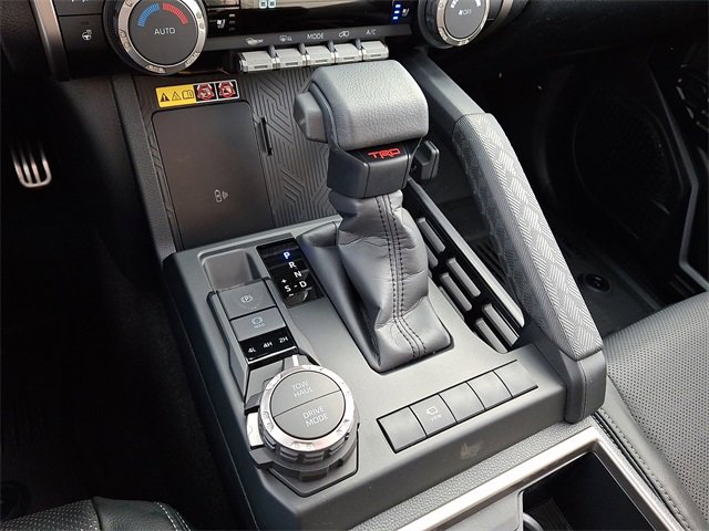 Here is a list of the vehicles features TRD Sport Premium, 4WD, Blk Artificial Leather, 15 Speakers, 4-Wheel Disc Brakes, 4runner All Weather Cargo Tray, 4runner All Weather Floor Mats, ABS brakes, Air Conditioning, Alloy wheels, AM/FM radio: SiriusXM, Anti-whiplash front head restraints, Apple CarPlay/Android Auto, Auto High-beam Headlights, Automatic temperature control, Badge Inserts, Rear TOYOTA Matte Black, Black Front Emblem Badge Overlay, Brake assist, Bumpers: body-color, Driver door bin, Driver vanity mirror, Dual front impact airbags, Dual front side impact airbags, Electronic Stability Control, Emergency communication system: Safety Connect (1-year trial), Exterior Parking Camera Rear, Front anti-roll bar, Front Bucket Seats, Front Center Armrest, Front dual zone A/C, Front fog lights, Front reading lights, Front wheel independent suspension, Gloss Black Roof Rail Cross Bars, Heated and Ventilated Front Bucket Seats, Heated door mirrors, Heated front seats, Heated steering wheel, Illuminated entry, Intelligent Inside Rear View Mirror, Knee airbag, Leather Shift Knob, Leather steering wheel, Low tire pressure warning, Memory seat, Moonroof, Navigation System, Occupant sensing airbag, Outside temperature display, Overhead airbag, Overhead console, Panic alarm, Passenger door bin, Passenger vanity mirror, Power door mirrors, Power driver seat, Power passenger seat, Power steering, Power windows, Predator Drop Black Side Steps, Radio: 14" Audio, Rear anti-roll bar, Rear seat center armrest, Rear side impact airbag, Rear window defroster, Rear window wiper, Remote keyless entry, Security system, SofTex Seat Trim, Speed control, Speed-sensing steering, Split folding rear seat, Spoiler, Steering wheel mounted audio controls, Tachometer, Telescoping steering wheel, Tilt steering wheel, Traction control, Trip computer, Variably intermittent wipers, Ventilated front seats, and Wheels: 20" Dark-Gray Painted Alloy TSRP is not the sales price and does not include taxes, tags, title, adjusted market value, dealer installed equipment (if applicable), and $490 dealer documentary fee.