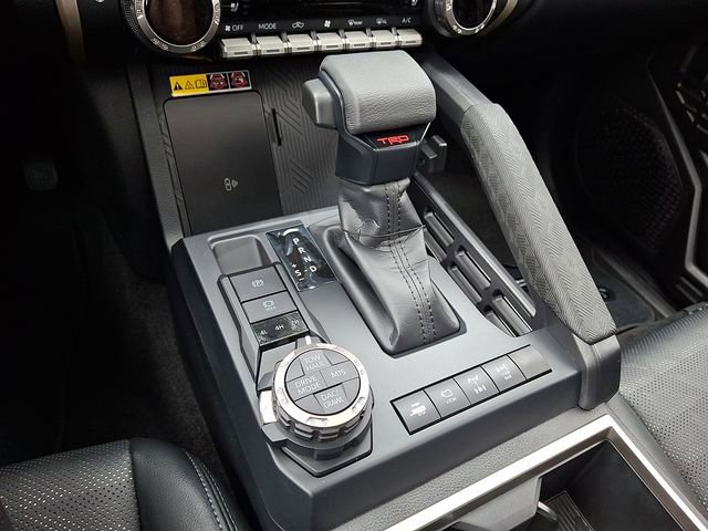 Here is a list of the vehicles features TRD Off Road Premium Package (3D Multi-Terrain Monitor, Deck Storage Box, Digital Rearview Mirror, Heated Front Seats, Heated Leather-Trimmed Steering Wheel, JBL Premium Audio, and Low Auxiliary (30A) Switches), 4WD, 18" Wheels, 3.583 Axle Ratio, 4-Wheel Disc Brakes, 6 Speakers, ABS brakes, Air Conditioning, All Weather Floor Liners, Alloy wheels, AM/FM radio: SiriusXM, Anti-whiplash front head restraints, Apple CarPlay/Android Auto, Auto High-beam Headlights, Auto-dimming Rear-View mirror, Automatic temperature control, Brake assist, Bumpers: body-color, Chrome Exhaust Tip, Driver door bin, Driver vanity mirror, Dual front impact airbags, Dual front side impact airbags, Electronic Stability Control, Emergency communication system: Safety Connect (up to 10-year trial subscription), Exterior Parking Camera Rear, Fabric Seat Trim, Four wheel independent suspension, Front anti-roll bar, Front Bucket Seats, Front Center Armrest, Front fog lights, Front reading lights, Fully automatic headlights, Hard Tri-Fold Tonneau Cover, Heated door mirrors, Illuminated entry, Knee airbag, Leather Shift Knob, Leather steering wheel, Low tire pressure warning, Occupant sensing airbag, on-Off Front Stabilizer Disconnect Mechanism, Outside temperature display, Overhead airbag, Overhead console, Panic alarm, Passenger door bin, Passenger vanity mirror, Power door mirrors, Power steering, Power windows, Radio: 8" Toyota Audio Multimedia, Rear step bumper, Rear window defroster, Remote keyless entry, Security system, SofTex Seat Trim, Speed control, Speed-sensing steering, Split folding rear seat, Steering wheel mounted audio controls, Tachometer, Telescoping steering wheel, Tilt steering wheel, Traction control, Trip computer, Turn signal indicator mirrors, and Variably intermittent wipers TSRP is not the sales price and does not include taxes, tags, title, adjusted market value, dealer installed equipment (if applicable), and $490 dealer documentary fee.