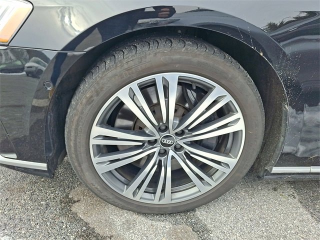Here is a list of the vehicles features Contour/Ambient LED Interior Lighting Package, Executive Plus Package (20" 10-Parallel-Spoke-Design Wheels, Acoustic & Break Resistant Dual-Pane Side Windows, Audi Active Lane Assist, Audi Adaptive Cruise Assist, Audi Side Assist, Front Seat Massage Function, Head-Up Display, Heated 4-Spoke Multifunction Steering Wheel, Heated Front Surfaces, Heated Rear Outboard Seats, Intersection Assist, Rear Matrix LED Reading Lights, Rear Seat Remote Control, and Traffic Sign Recognition), Extended Leather Package, Luxury Package (Aluminum Optic Buttons, Heated Rear Surfaces, Light Alcantara Headliner, Power Rear Outboard Seats w/Lumbar & Memory, and USB Audi Music Interface For Rear Seats), A8 4.0 LWB quattro L, 4D Sedan, 4.0L V8 Turbocharged DOHC 32V LEV3-ULEV125 453hp, 8-Speed Automatic with Tiptronic, quattro, Black Metallic, Black Leather, 17 Speakers, 22-Way Heated Multi-Contour Comfort Front Seats, 4-Wheel Disc Brakes, ABS brakes, Adaptive suspension, Air Conditioning, Alloy wheels, AM/FM radio: SiriusXM, Audi Guard Protection Kit, Audi smartphone interface (Apple CarPlay/Android Auto), Auto High-beam Headlights, Auto tilt-away steering wheel, Auto-dimming door mirrors, Auto-dimming Rear-View mirror, Auto-leveling suspension, Automatic temperature control, Bang & Olufsen 3D Advanced Sound System, Bang & Olufsen 3D Premium Sound System, Brake assist, Bumpers: body-color, Compass, Delay-off headlights, Delete Front License Plate Holder, Door auto-latch, Driver door bin, Driver vanity mirror, Dual front impact airbags, Dual front side impact airbags, Electronic Stability Control, Emergency communication system, Four wheel independent suspension, Front anti-roll bar, Front Bucket Seats, Front Center Armrest w/Storage, Front dual zone A/C, Front fog lights, Front reading lights, Garage door transmitter: HomeLink, Genuine wood console insert, Head restraints memory, Headlight cleaning, Heated door mirrors, Heated front seats, HVAC memory, Illuminated entry, Knee airbag, Leather Shift Knob, Leather steering wheel, Low tire pressure warning, Memory seat, Navigation system: MMI Navigation plus, Occupant sensing airbag, Outside temperature display, Overhead airbag, Overhead console, Panic alarm, Passenger door bin, Passenger vanity mirror, Power 2nd-Row Moonroof, Power adjustable front head restraints, Power door mirrors, Power driver seat, Power moonroof, Power passenger seat, Power steering, Power windows, Radio data system, Radio: MMI Navigation Plus, Rain sensing wipers, Rear air conditioning, Rear anti-roll bar, Rear dual zone A/C, Rear fog lights, Rear reading lights, Rear seat center armrest, Rear side impact airbag, Rear Window Blind, Rear window defroster, Remote keyless entry, Seatbelt memory, Security system, Speed control, Speed-sensing steering, Speed-Sensitive Wipers, Steering wheel memory, Steering wheel mounted audio controls, Tachometer, Telescoping steering wheel, Tilt steering wheel, Traction control, Trip computer, Turn signal indicator mirrors, Valcona Leather Seat Upholstery, Variably intermittent wipers, Ventilated front seats, and Wheels: 19" 15-Spoke Design TSRP is not the sales price and does not include