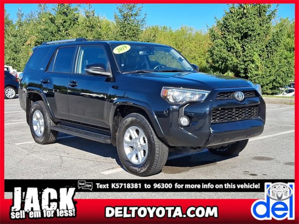 2019 Toyota 4Runner in alluring Midnight Black Metallic!! Includes . Just 200707 miles on this perfect Intermediate Sport Utility. Haven't you been looking for a 4Runner that will make your neighbors drool with envy? When you go to the store, the durable 5-Speed Automatic with Overdrive in this SUV keeps you rollin' smoothly and efficiently down the road. On top of it all, this vehicle is priced-to-move and is easy on your wallet due to big mark-downs that are available now!! MSRP is not the sales price and does not include taxes, tags, title, adjusted market value, dealer installed equipment (if applicable), and $477 dealer documentary fee.