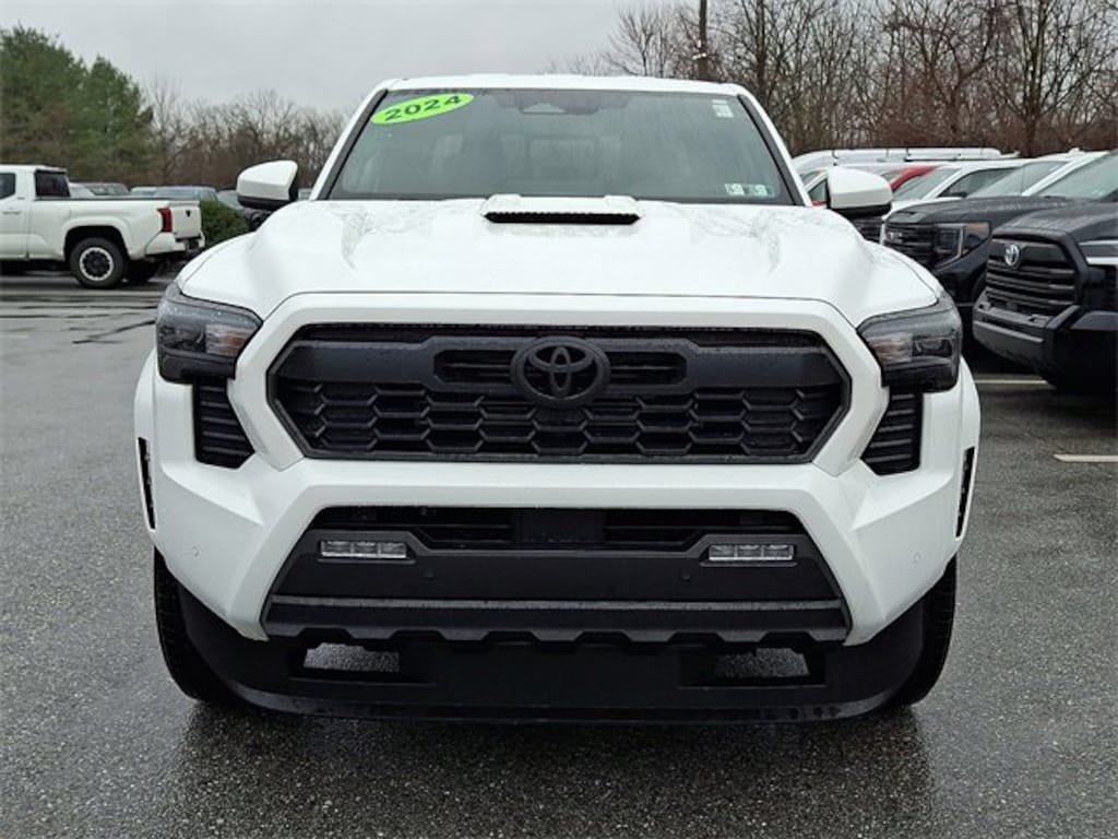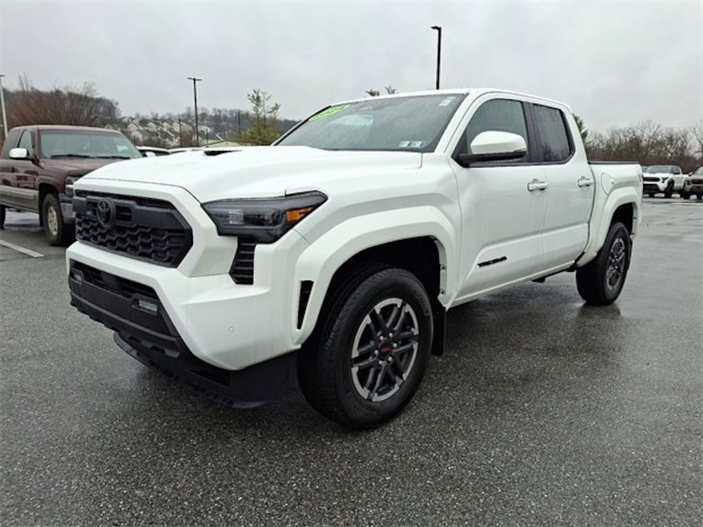Here is a list of the vehicles features TRD Sport Upgrade Package (8-Way Power Driver & Passenger Seat Adjusters, Deck DC Power Pre-wire, Digital Key Capability, Front & Rear Parking Assist w/Automatic Braking, Heated Front Seats, Heated Leather-Trimmed Steering Wheel, Integrated Trailer Brake Controller, JBL Premium Audio, Power Horizontal Rear Window, Pre-Wired Auxiliary Switches, and Qi-Compatible Wireless Charging), Tacoma TRD Sport, 4D Double Cab, 2.4L 4-Cylinder, 8-Speed Automatic, 4WD, Ice Cap, Boulder/Black w/Fabric Seat Trim (FC), 3.583 Axle Ratio, 4-Wheel Disc Brakes, 6 Speakers, ABS brakes, Air Conditioning, Alloy wheels, AM/FM radio: SiriusXM, Anti-whiplash front head restraints, Apple CarPlay/Android Auto, Auto High-beam Headlights, Auto-dimming Rear-View mirror, Automatic temperature control, Brake assist, Bumpers: body-color, Driver door bin, Driver vanity mirror, Dual front impact airbags, Dual front side impact airbags, Electronic Stability Control, Emergency communication system: Safety Connect (1-year trial), Exterior Parking Camera Rear, Fabric Seat Trim (FE), Four wheel independent suspension, Front anti-roll bar, Front Bucket Seats, Front Center Armrest, Front fog lights, Front reading lights, Fully automatic headlights, Heated door mirrors, Illuminated entry, Knee airbag, Leather Shift Knob, Leather steering wheel, Low tire pressure warning, Occupant sensing airbag, Outside temperature display, Overhead airbag, Overhead console, Panic alarm, Passenger door bin, Passenger vanity mirror, Power door mirrors, Power steering, Power windows, Radio: 8" Toyota Audio Multimedia, Rear step bumper, Rear window defroster, Remote keyless entry, Security system, Speed control, Speed-sensing steering, Split folding rear seat, Steering wheel mounted audio controls, Tachometer, Telescoping steering wheel, Tilt steering wheel, Traction control, Trip computer, Turn signal indicator mirrors, Variably intermittent wipers, and Wheels: 18" TRD Sport Alloy TSRP is not the sales price and does not include taxes, tags, title, adjusted market value, dealer installed equipment (if applicable), and $477 dealer documentary fee.